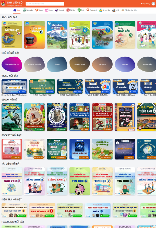 Ebook: Nhà trường cung cấp Ebook bộ sách giáo khoa, Ebook sách giáo viên mà trường đã chọn lựa và các Ebook học tiếng Anh bằng AI hay eBook tham khảo lên thư viện số để học sinh và giáo viên tham khảo khi không mang sách giấy bên cạnh.